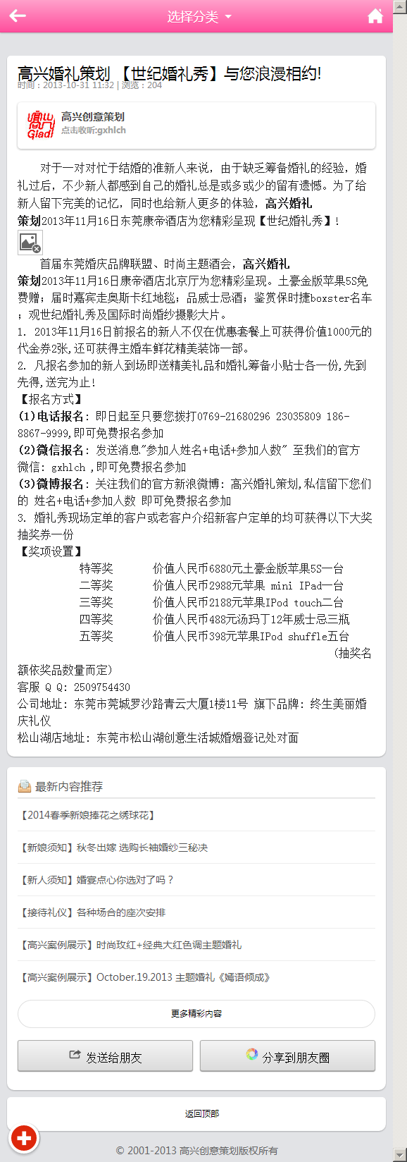 婚庆公司手机app模板【未结合大米cms】 -金沙娱场城app